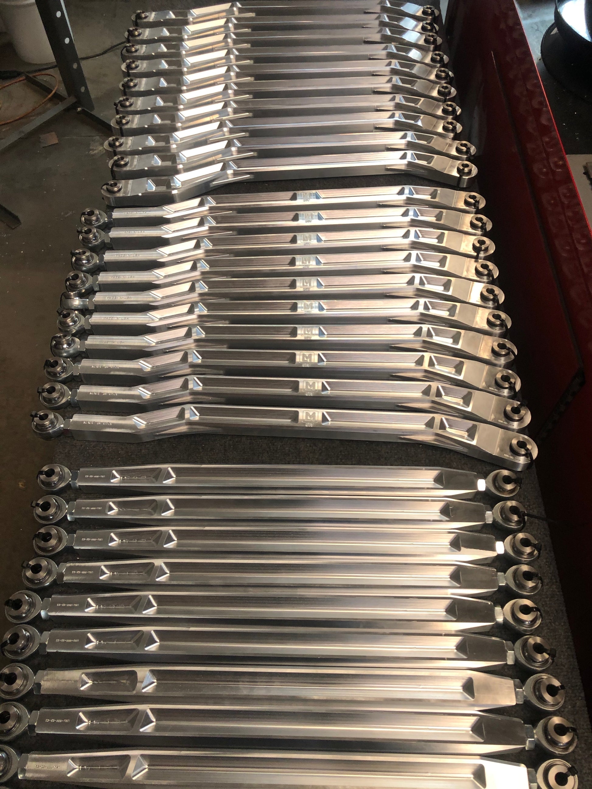 - 6 massive radius rods with RH/LH 5/8 bearings